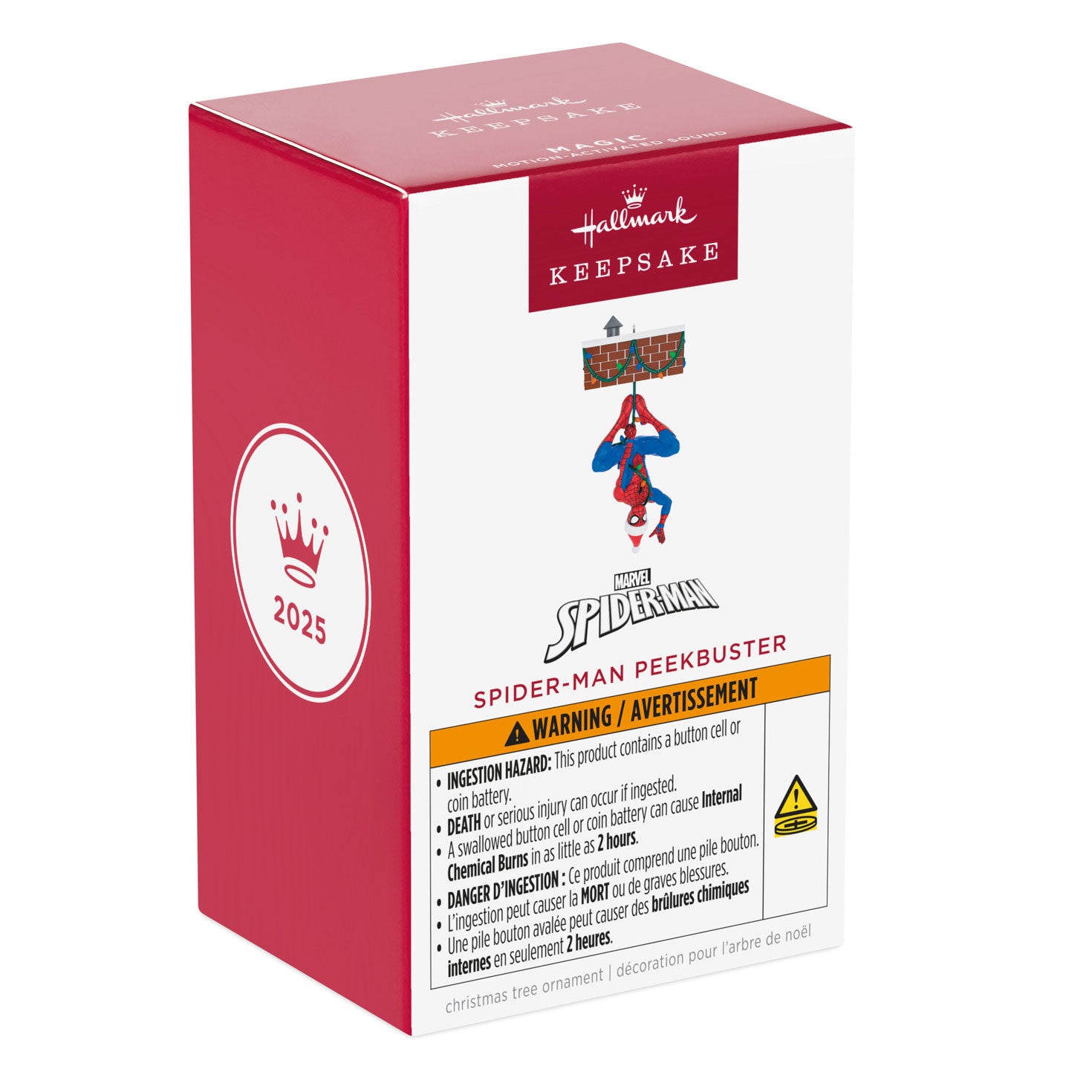 Don't worry about any present-peekers in your house with your friendly neighborhood Super Hero hanging around! Just dangle this fun Christmas tree ornament near the gifts you want to protect and turn it on. Any movement near the gifts results in warning messages from the jolly ol' Webhead Spider-Man who stands—or rather, hangs—guard to keep your packages under wraps until the big day. Battery operated.